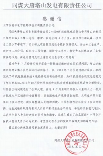 當(dāng)前位置: 國(guó)能中電公司動(dòng)態(tài)> 塔山項(xiàng)目感謝信